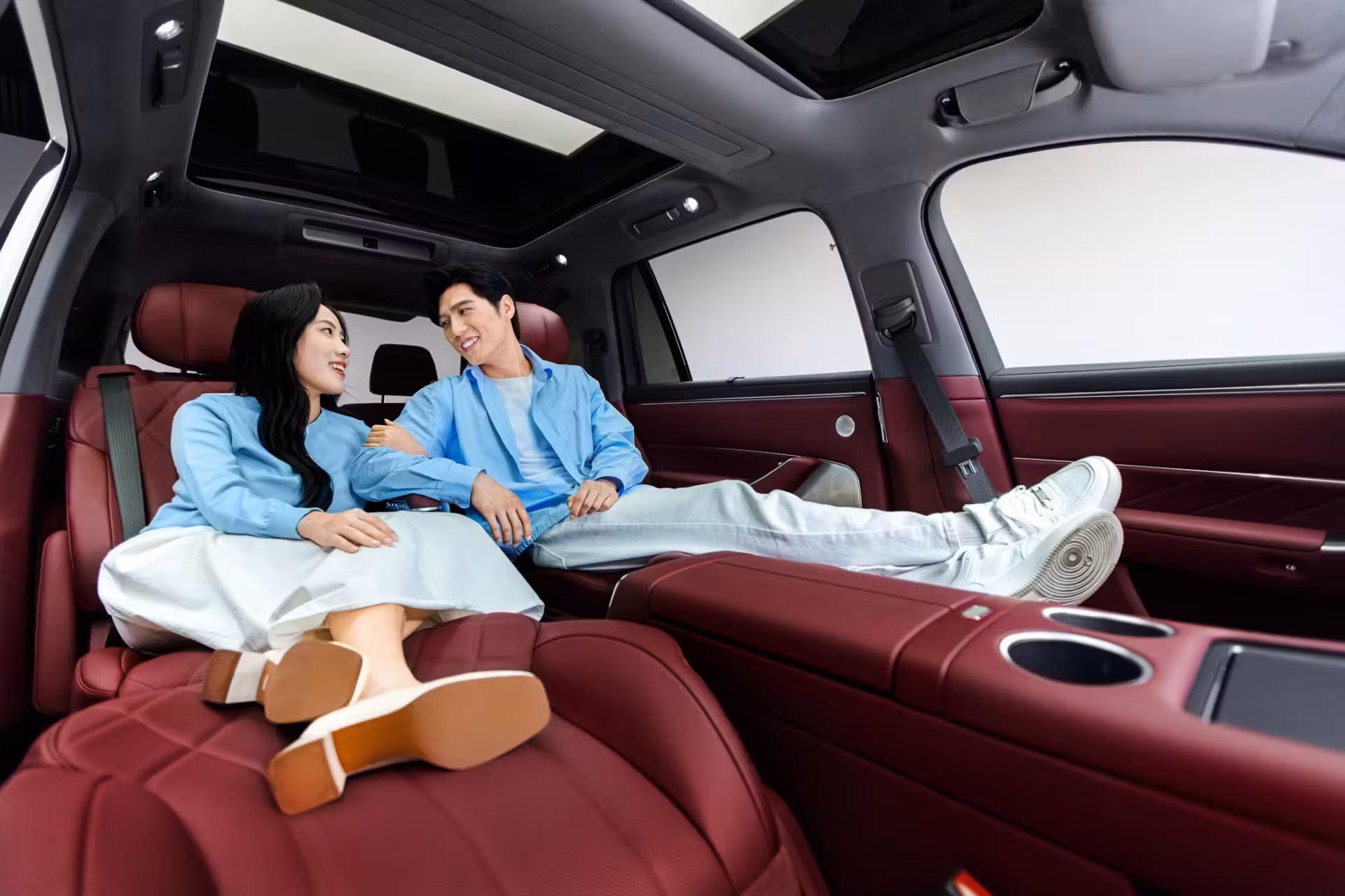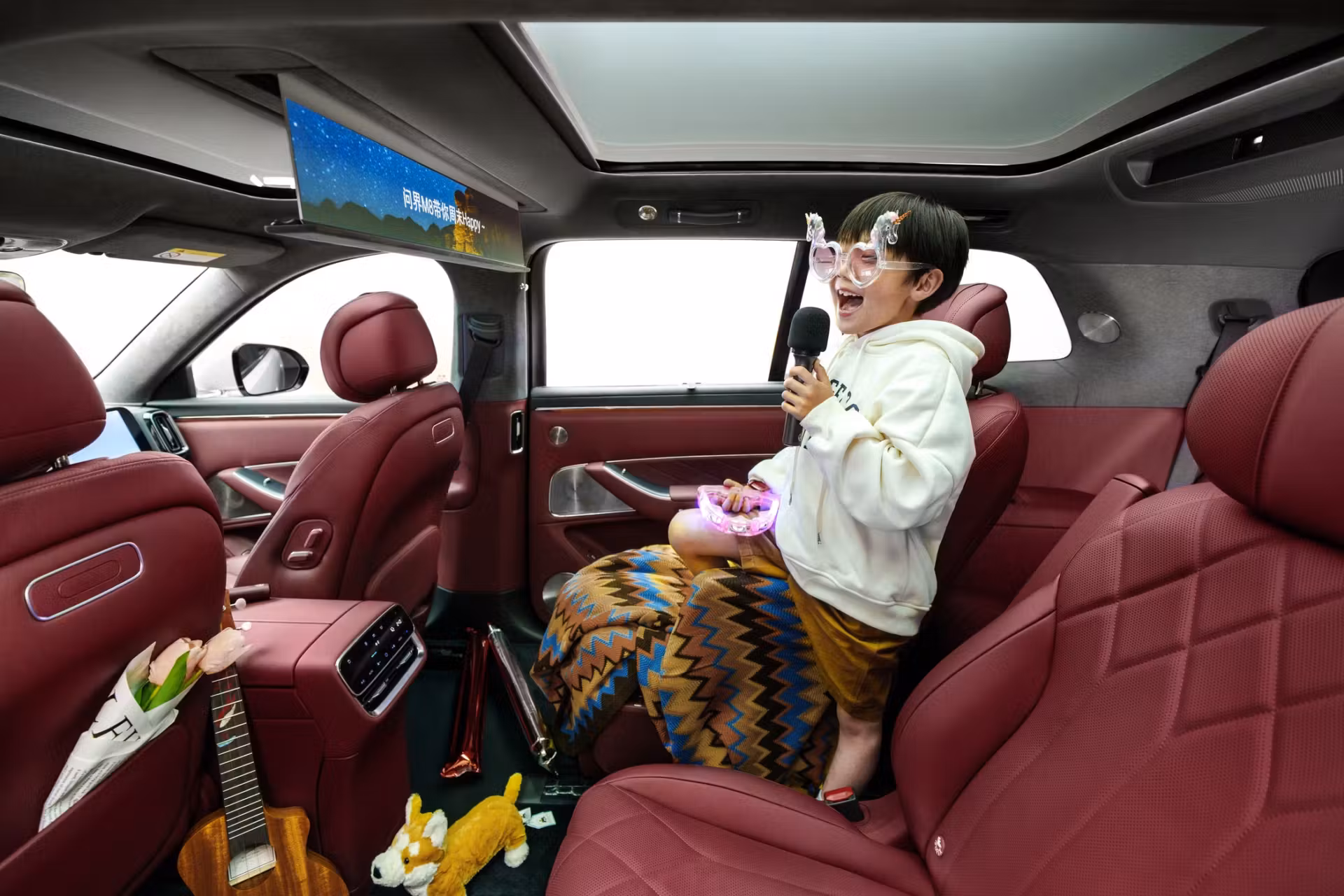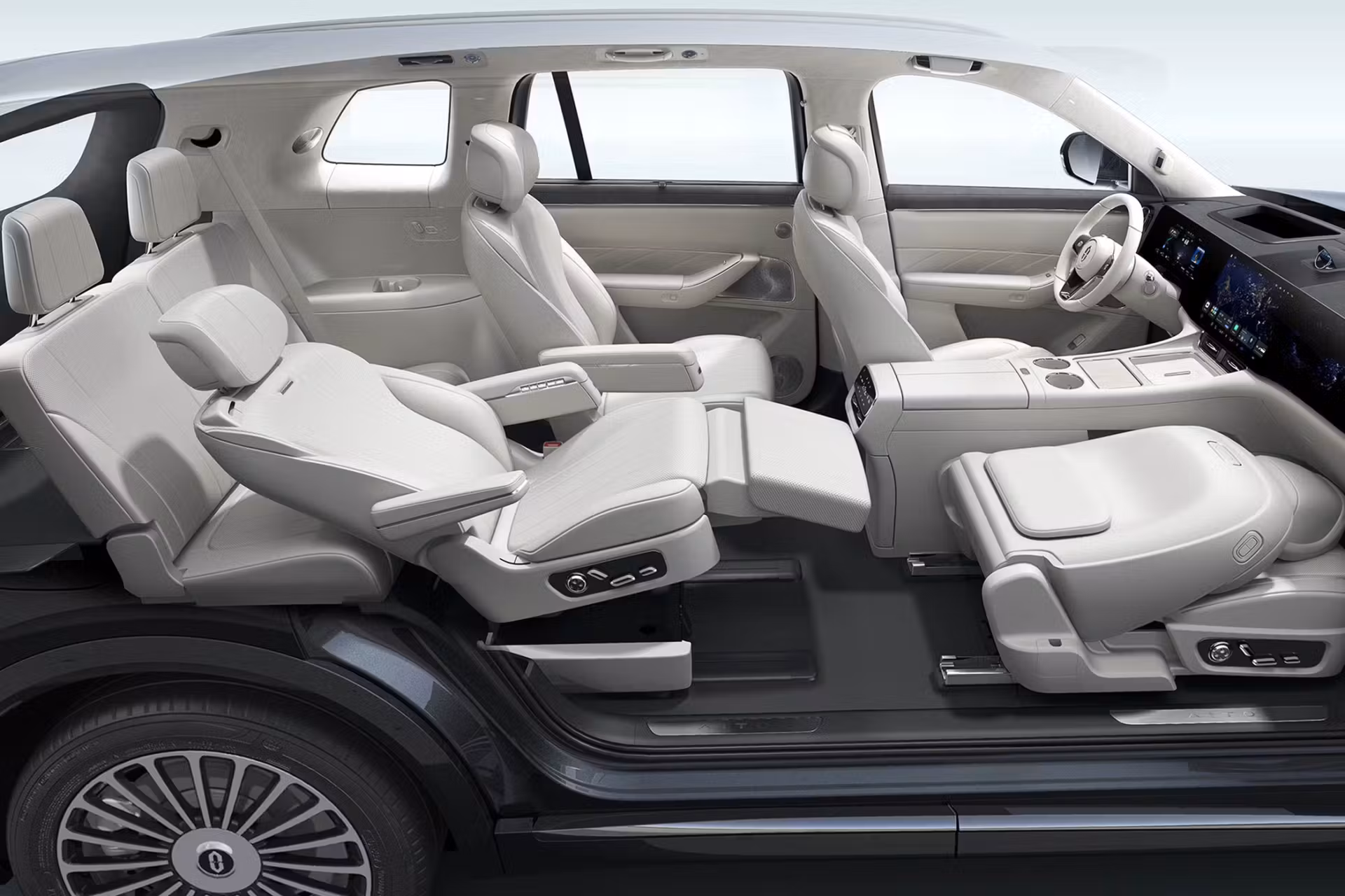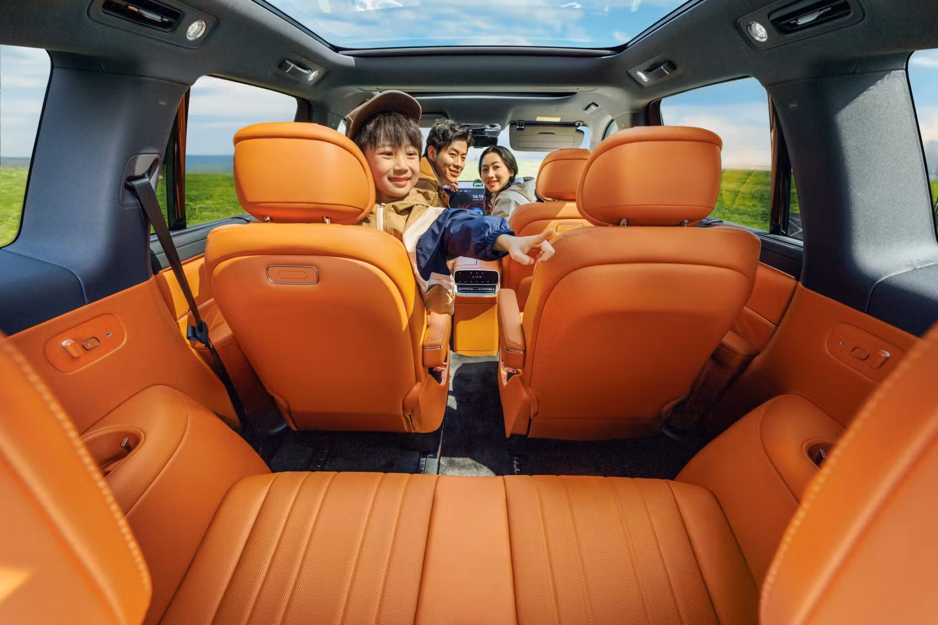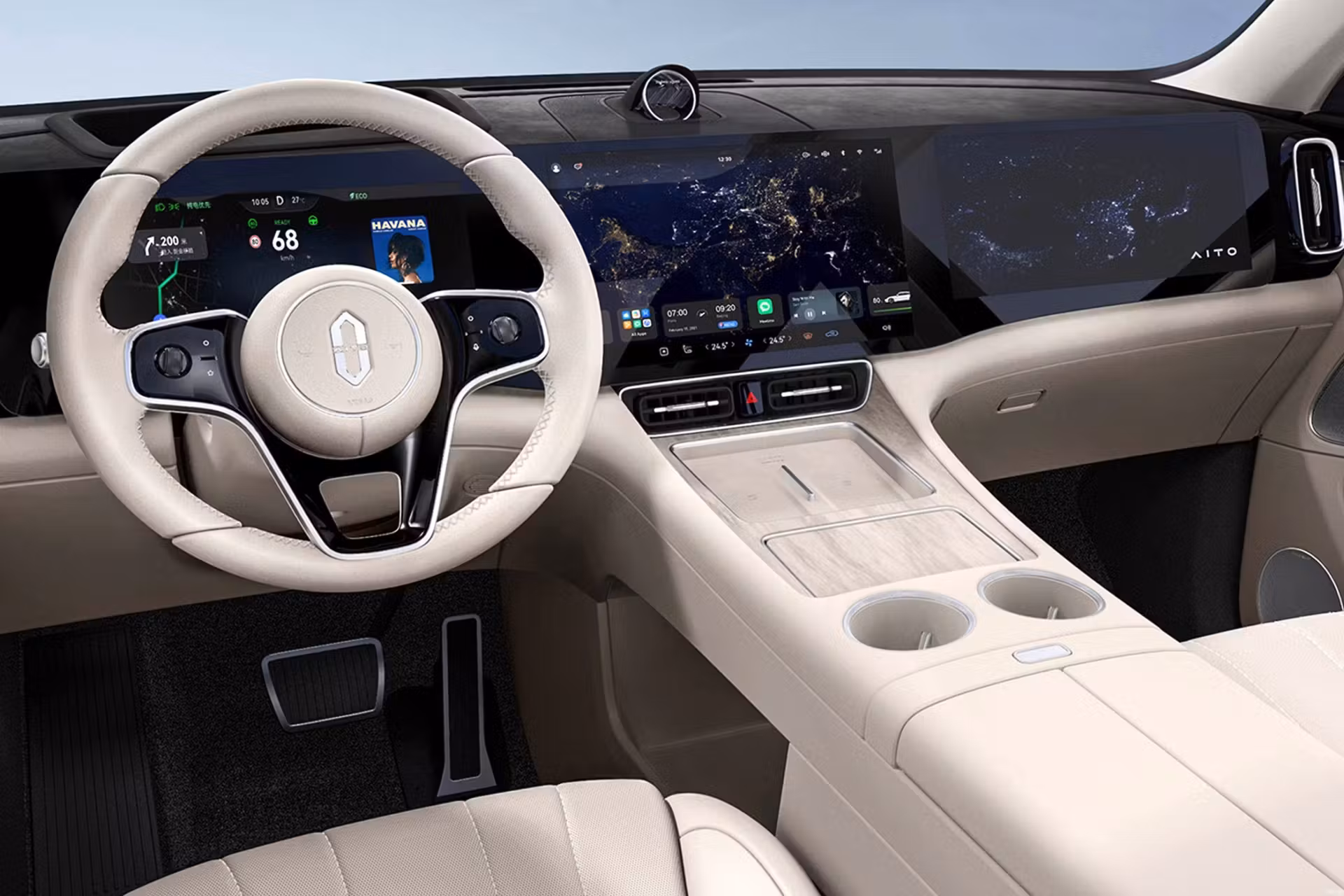AITO M8 будет предложен с двухрядным 5-местным салоном и трёхрядным салоном с посадочной формулой 2+2+2. С места водителя AITO M8 практически не отличается от AITO M9, да и набор удобств примерно такой же, как у флагмана: трёхэкранное табло на передней панели дополнено проекционным экраном на лобовом стекле, есть мощная аудиосистема Huawei, опускающийся с потолка киноэкран и уличный кинотеатр, то есть смотреть фильмы можно одновременно внутри и снаружи автомобиля. Встроенное электронное оборудование от Huawei позволяет в теории активировать на AITO M8 полноценный автопилот, просто он пока в Китае не легализован, но электронные помощники тем не менее значительно облегчают рутинную езду.