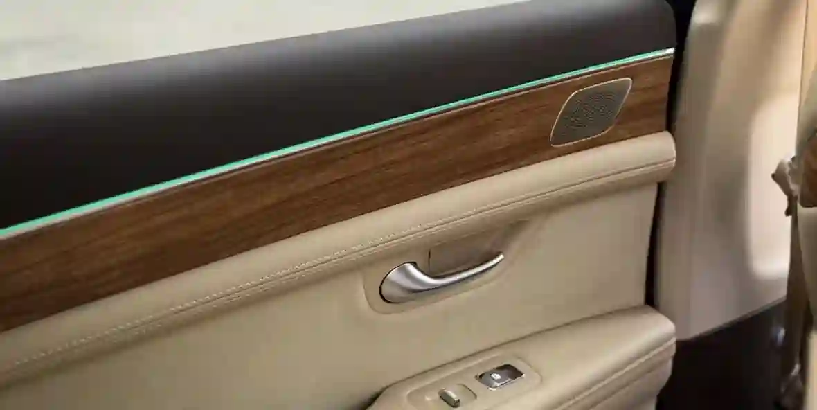 Панорамная крыша почти по всей длине, широкие кресла, крупные дверные карты без лишних деталей. Минимализм, но с изюминкой что ли.