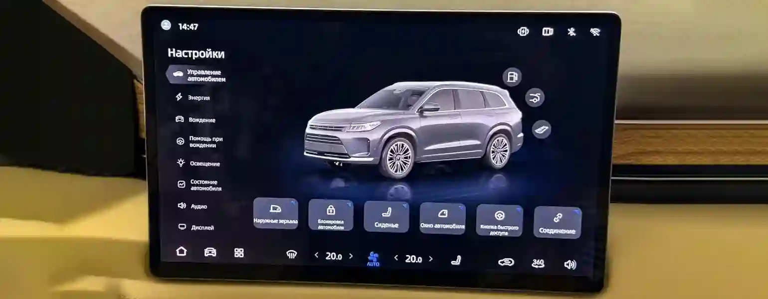 В операционке предусмотрено управление всеми элементами авто: от климата и дефлекторов вентиляции до режимов движения и настроек безопасности.