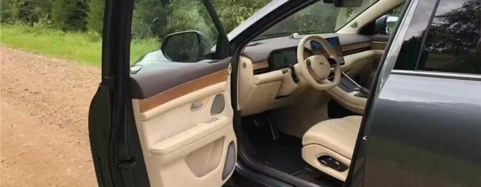 Дверь при открывании тяжелая, кстати, все они у M7 снабжены доводчиками, признак премиальности. Интерьер машины тоже выглядит дорого: отличного качества экокожа наппа, искусственная замша, мягкий пластик, имитация дерева с открытыми порами. Панорамная крыша со сдвижной передней секцией и солнцезащитной шторкой, которой, к слову, у некоторых дорогих «китайцев» нет. Удобные сиденья с подогревами, вентиляцией и массажем. Есть даже режим сна: экраны гаснут, динамики в подголовниках начинают синтезировать «белый шум», можно включить таймер будильника и вздремнуть в разложенном кресле.